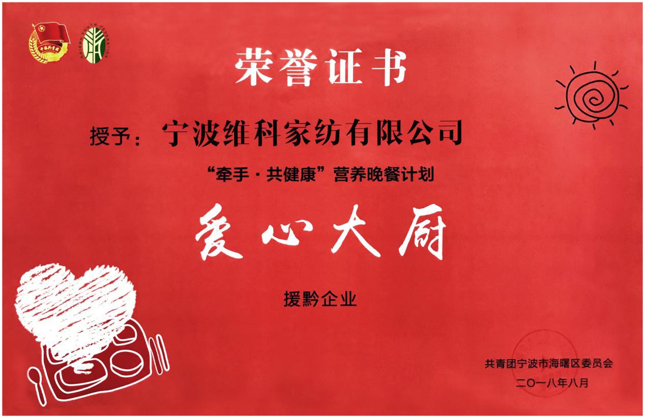 海曙區(qū)委副書記、政法委書記張啟表在蒞臨維科家紡攤位詢問義賣情況時,對于維科家紡的企業(yè)責(zé)任感、愛心奉獻(xiàn)精神,表示了高度贊揚(yáng)。海曙區(qū)團(tuán)委更是授予維科家紡“愛心大廚援黔企業(yè)”榮譽(yù)稱號。