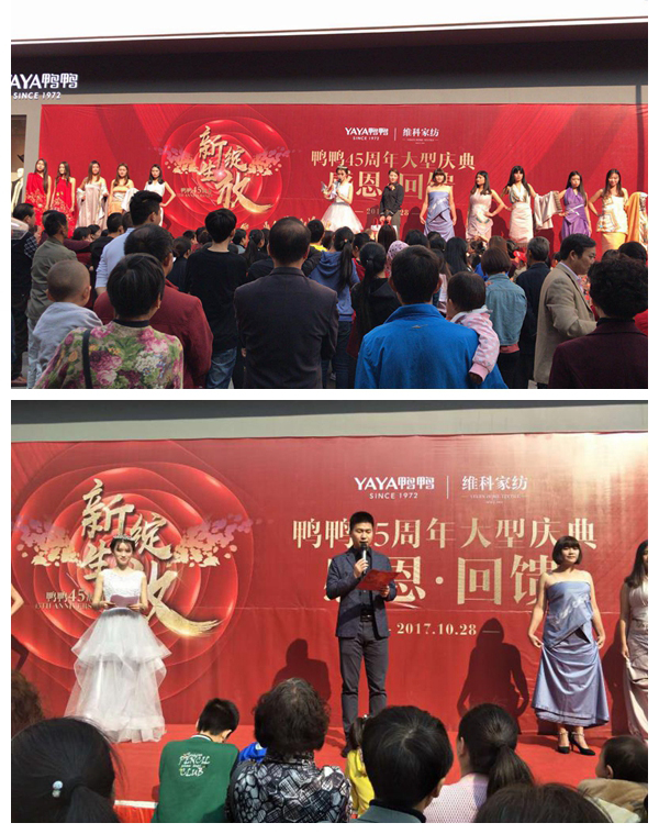 2017年10月28日,維科集團(tuán)旗下全國首家集合店在江西共青城市盛大開業(yè)。開業(yè)慶典活動(dòng)人氣爆棚,活動(dòng)進(jìn)行兩天銷售突破10萬元。28日早上以歡快的鑼鼓聲開場,吸引了店鋪周邊的共青市民駐足。維科家紡用床單和被套做裹布秀出場,模特優(yōu)雅的步伐,配合主持人對每款產(chǎn)品FAB的介紹,讓廣大消費(fèi)者對維科家紡歐了全新的認(rèn)識(shí)。隨后呀呀實(shí)體店管理公司南大區(qū)經(jīng)理李海泉發(fā)表開業(yè)致辭。事業(yè)部副總經(jīng)理?xiàng)钴S輝、維科家紡總經(jīng)理王吉鋒、鴨鴨股份公司總經(jīng)理徐相圣等領(lǐng)導(dǎo)進(jìn)行開業(yè)剪彩,并陪同當(dāng)?shù)卣嘘P(guān)領(lǐng)導(dǎo)到敬老院進(jìn)行了愛心捐贈(zèng),相關(guān)媒體全程跟蹤采訪報(bào)道。此次開業(yè)慶典活動(dòng),不僅提升了鴨鴨品牌的美譽(yù)度,更擴(kuò)大了維科家紡在當(dāng)?shù)氐闹取?/span>