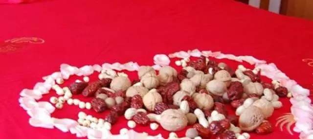 六、鋪床的流程:鋪床過(guò)程根據(jù)各地風(fēng)俗不同略有差別,老一輩都知道,一般鄰居中都有這樣的人。主要流程除了掃床、鋪鴛鴦?wù)怼堷P被之外,就是“撒帳(撒床)”了,將花生、桂圓、蓮子、栗子、棗等干果鋪撒在婚床上,取義“早立子、蓮生子、花生子(兒女雙全)”的祈愿。