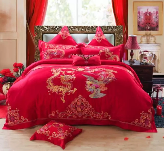 一、鋪紅:結(jié)婚當(dāng)天都需要鋪一套紅色的床品,鎮(zhèn)宅的同時(shí)也象征著新郎新娘紅紅火火的過(guò)著幸福的日子。