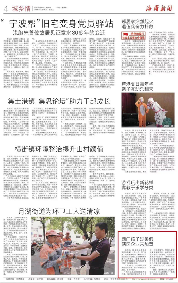 本次活動受到了海曙區(qū)西門街道及媒體的大力支持與關(guān)注。海曙區(qū)電視臺對活動現(xiàn)場進(jìn)行全程拍攝,來自山西大同的小候鳥韓斌在采訪中表示“這是我來寧波第一次有小朋友跟我一起過暑假,今天我不僅學(xué)會了疊被子,還拿了小達(dá)人的獎狀,我很開心!”